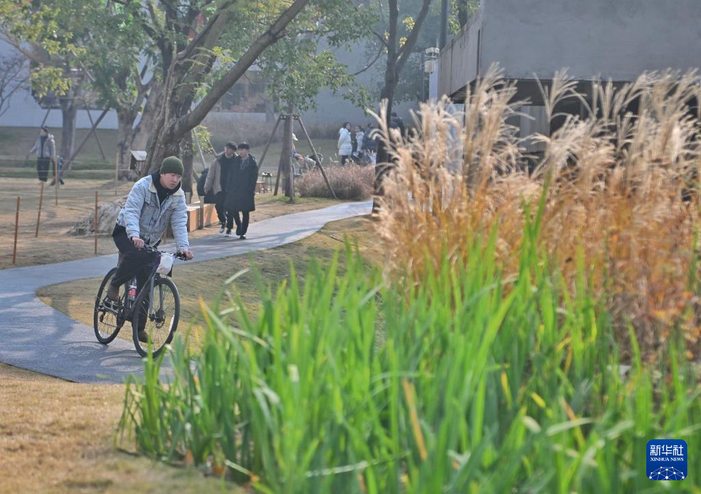 1月1日,市民在成都天府新区麓湖CPI项目内骑行。