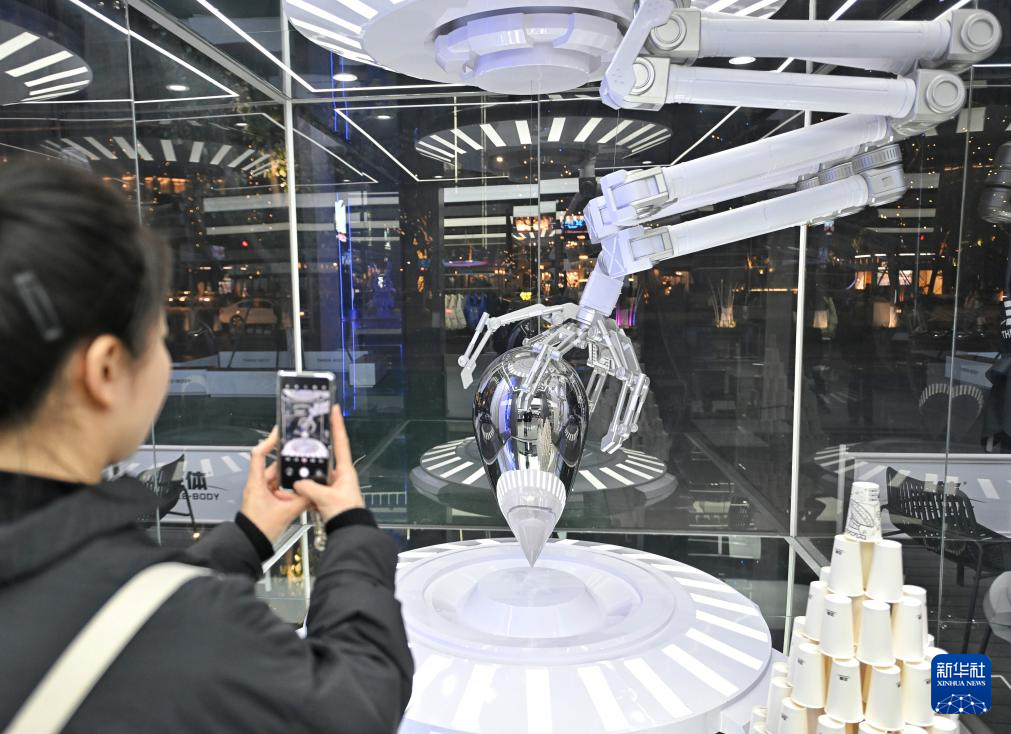 1月5日,市民在位于成都交子大道的三体四维空间拍摄“水滴”。