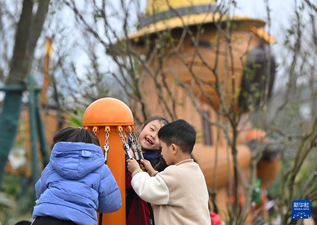 1月5日,小朋友在位于成都天府新区的卡皮巴拉主题乐园玩耍。