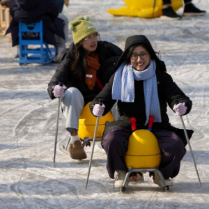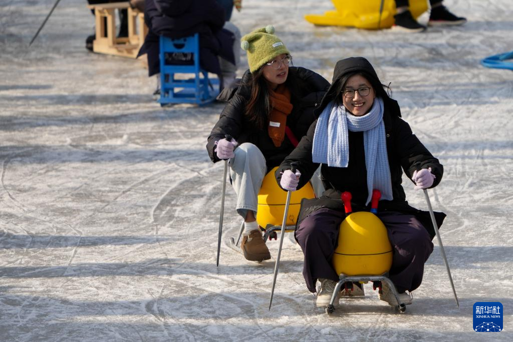 近日,北京许多公园冰场陆续开放,市民游客享受冰上游乐项目带来的乐趣。