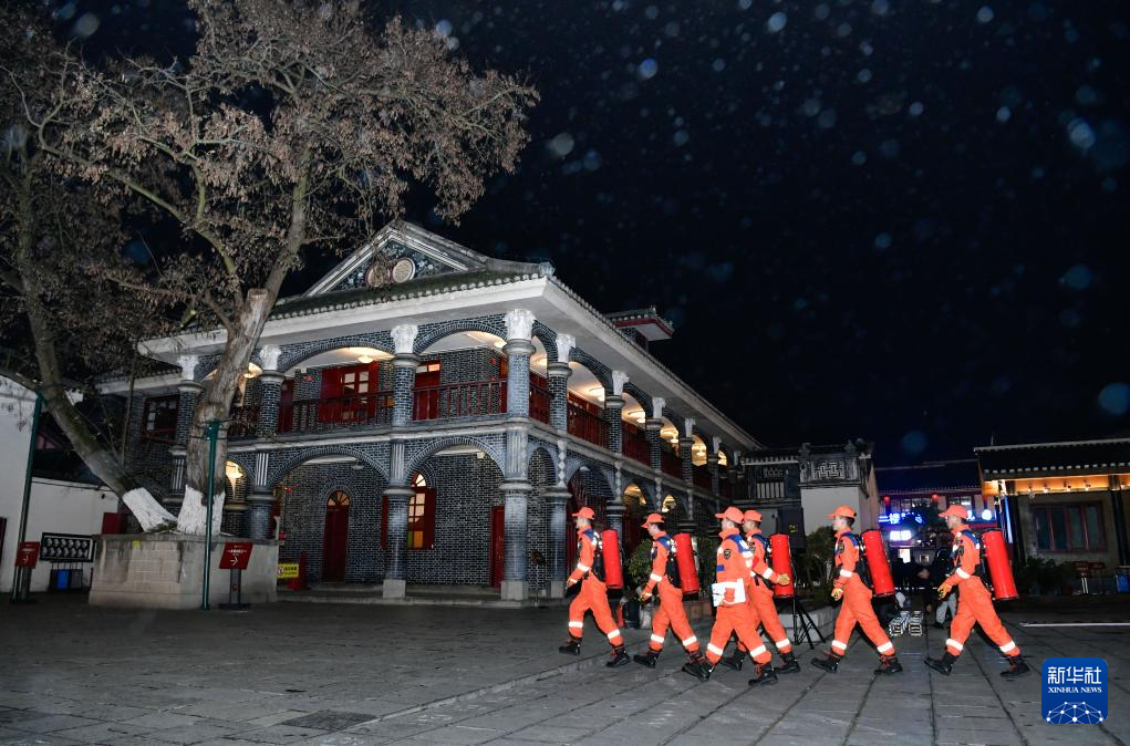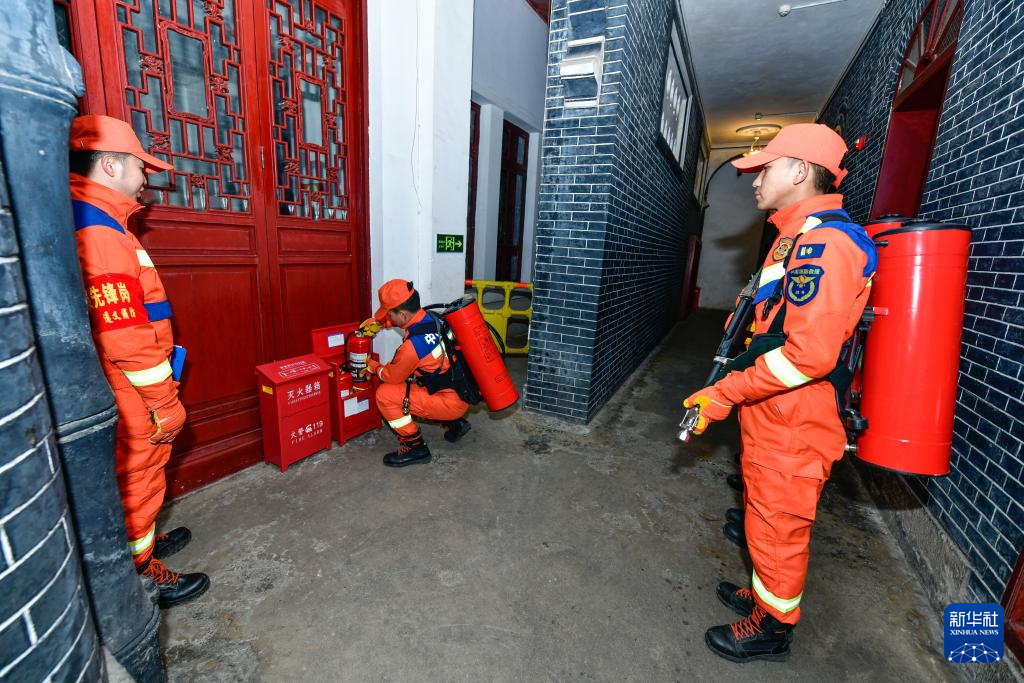 1月7日,贵州省遵义市红花岗区会址消防救援站的消防员在遵义会议会址进行防火巡查。