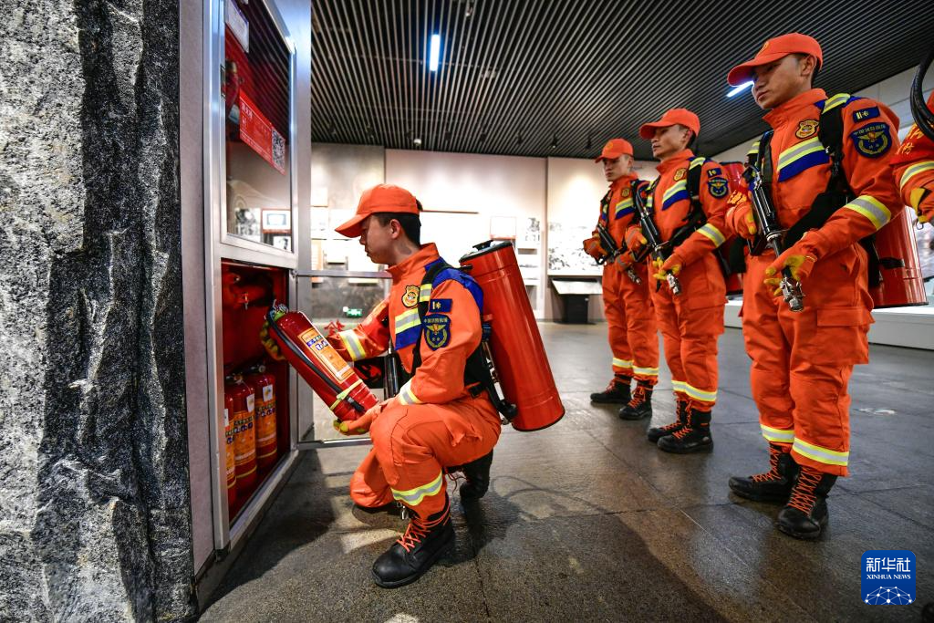 1月7日,贵州省遵义市红花岗区会址消防救援站的消防员在遵义会议纪念馆进行消防设施检查。