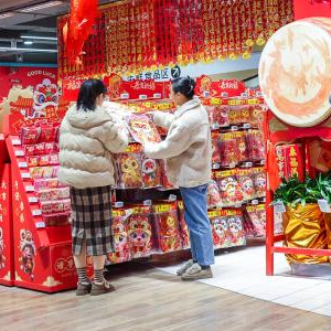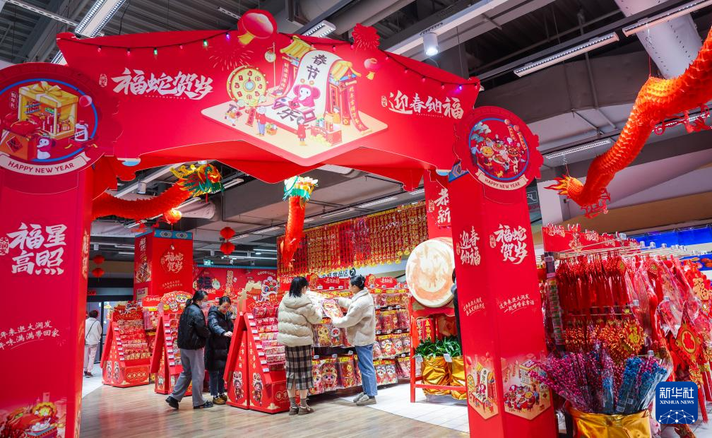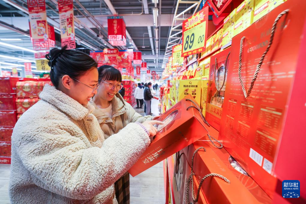 1月14日,市民在合乐城大润发超市挑选年货。