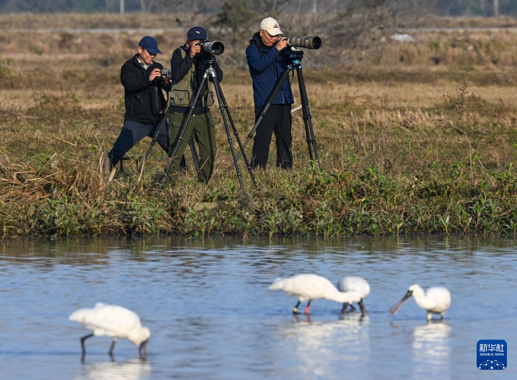 近日,不少黑脸琵鹭在位于海南儋州的儋州湾湿地觅食、飞翔,成为冬日一道独特风景。黑脸琵鹭是世界珍稀濒危鸟类、国家一级重点保护野生动物。近年来,当地通过退塘还湿、栽种红树林、巡护鸟类等方式,不断加强滩涂湿地修复和鸟类保护,湿地生物多样性日益丰富。