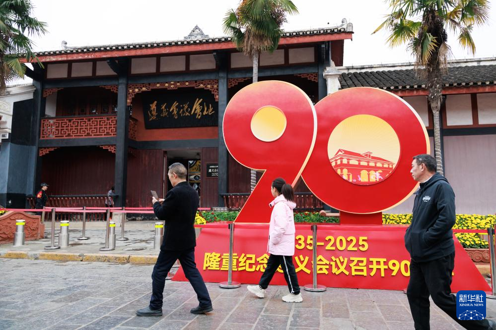 遵义会议召开90周年之际,不少游客来到位于贵州省遵义市的遵义会议会址参观,感受红色文化,追寻红色记忆。