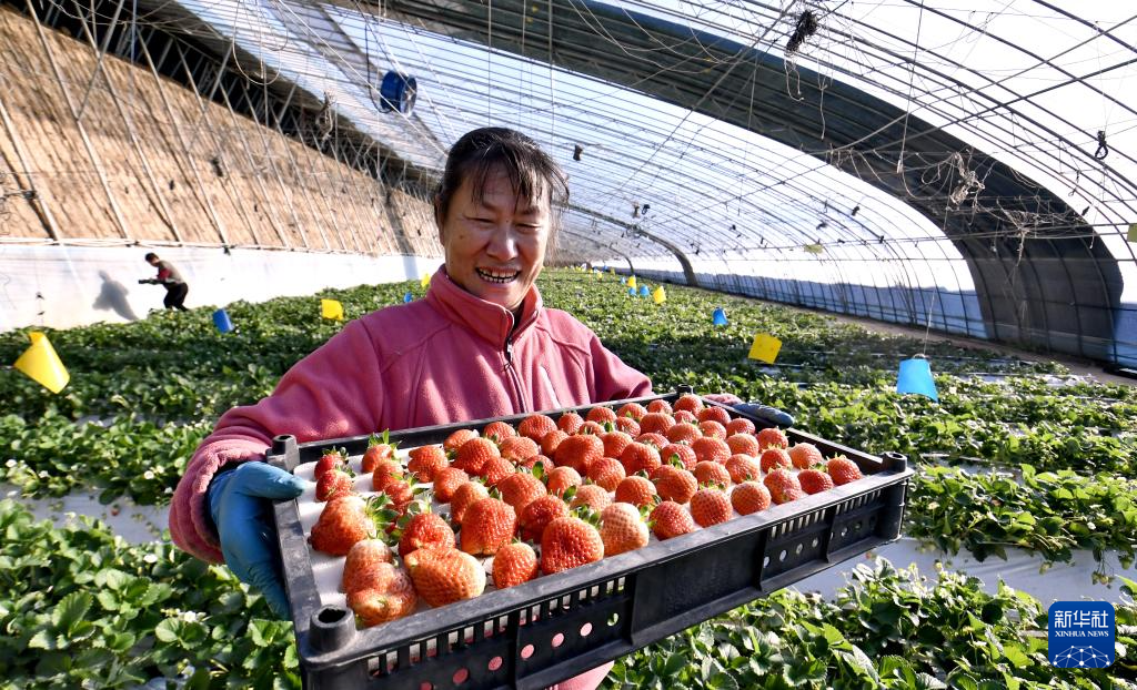 隆冬时节,在北京市平谷区南独乐河镇峰台村的智能温室内,草莓、番茄等果蔬飘香,一派丰收景象。