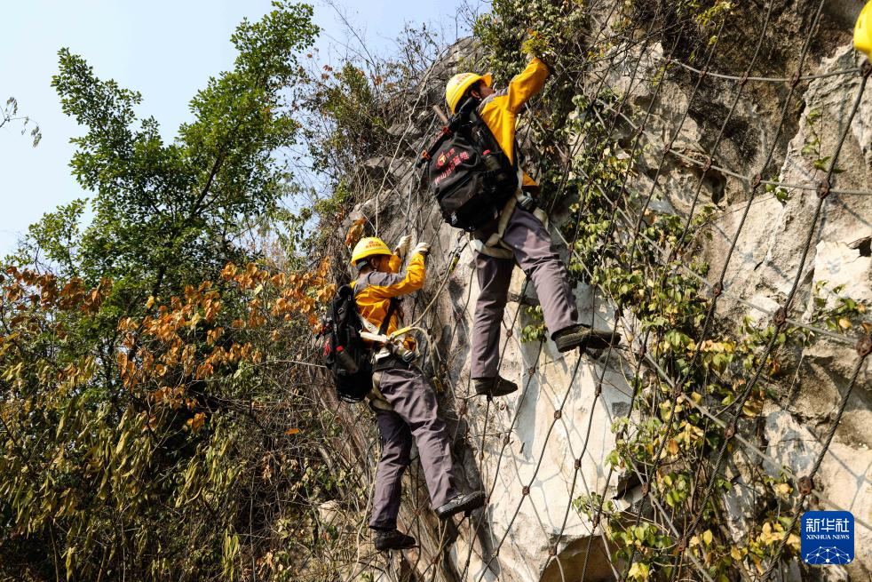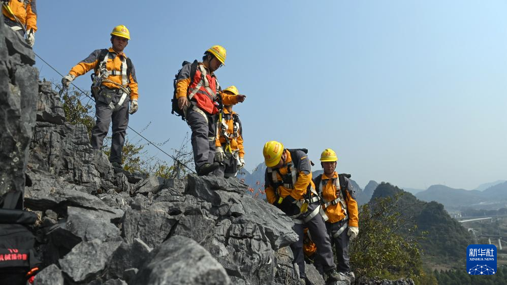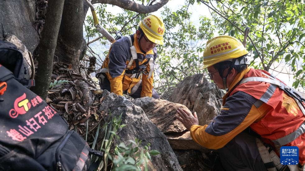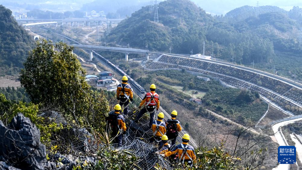 黔桂铁路是西部陆海新通道的重要组成部分,是西南地区出海的重要运输通道。春运期间,中国铁路南宁局集团有限公司柳州工务段金城江路桥危石工区的10名桥隧工每天都要翻山越岭,对辖区黔桂铁路沿线山体的危岩落石情况进行排查,及时整治隐患,护航春运安全。