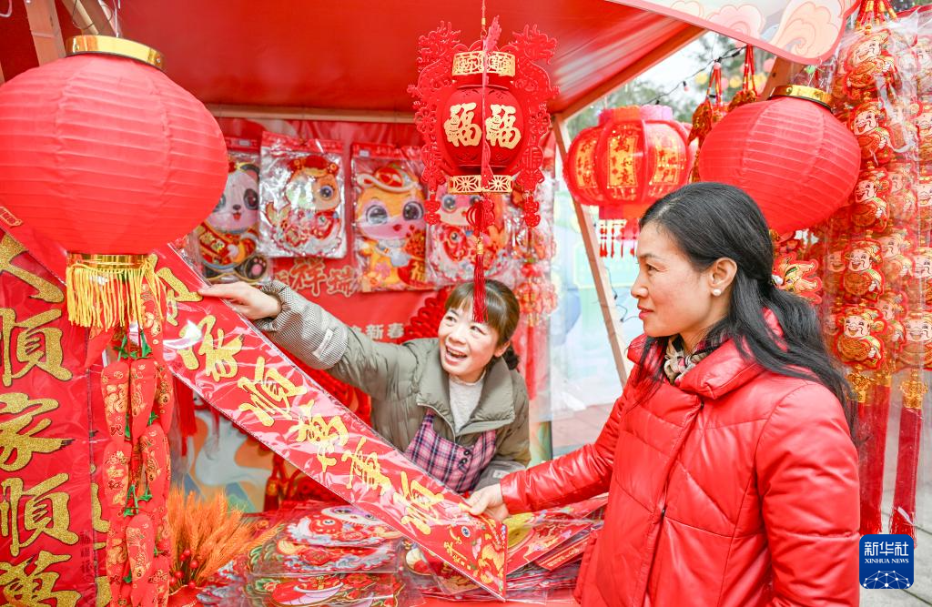 1月16日,市民在2025年川渝新春年货文化节上选购春联。
