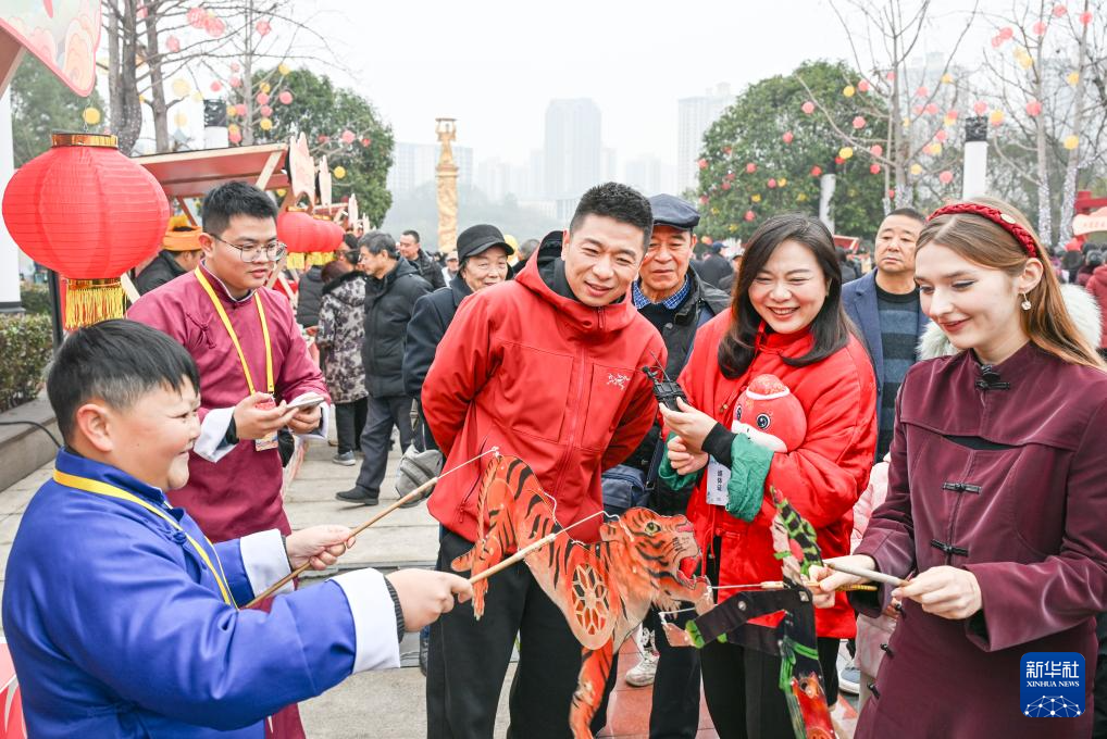 1月16日,游客在2025年川渝新春年货文化节上体验皮影戏。