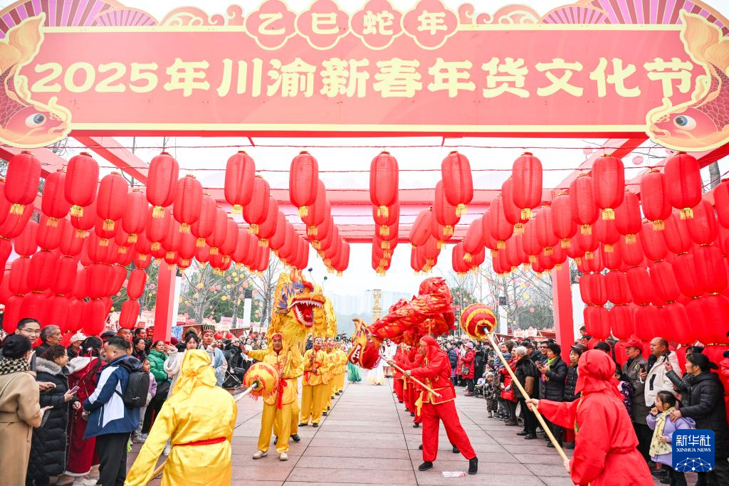 当日,2025年川渝新春年货文化节在重庆市永川区兴龙湖拉开帷幕。本次文化节以“龙腾送祥瑞 蛇舞迎新春”为主题,通过新年民俗表演、新春游园、展示展销等活动,让市民和游客充分感受浓郁年味、体验传统文化魅力。