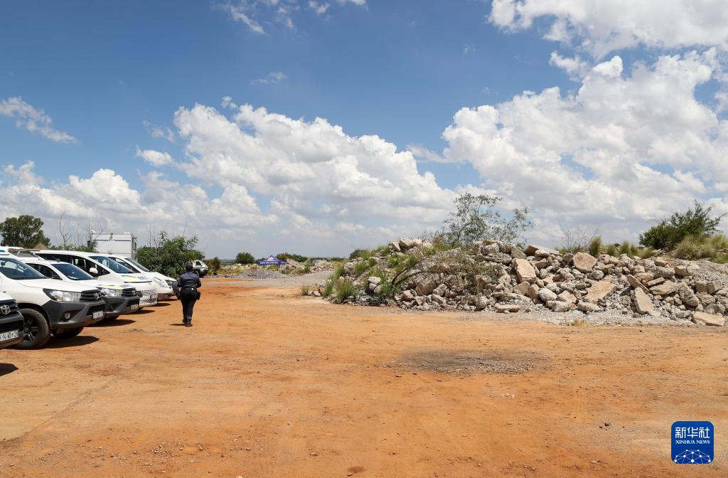 1月16日,在南非西北省斯蒂尔方丹,救援人员与警方人员交流。