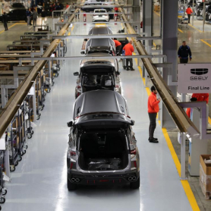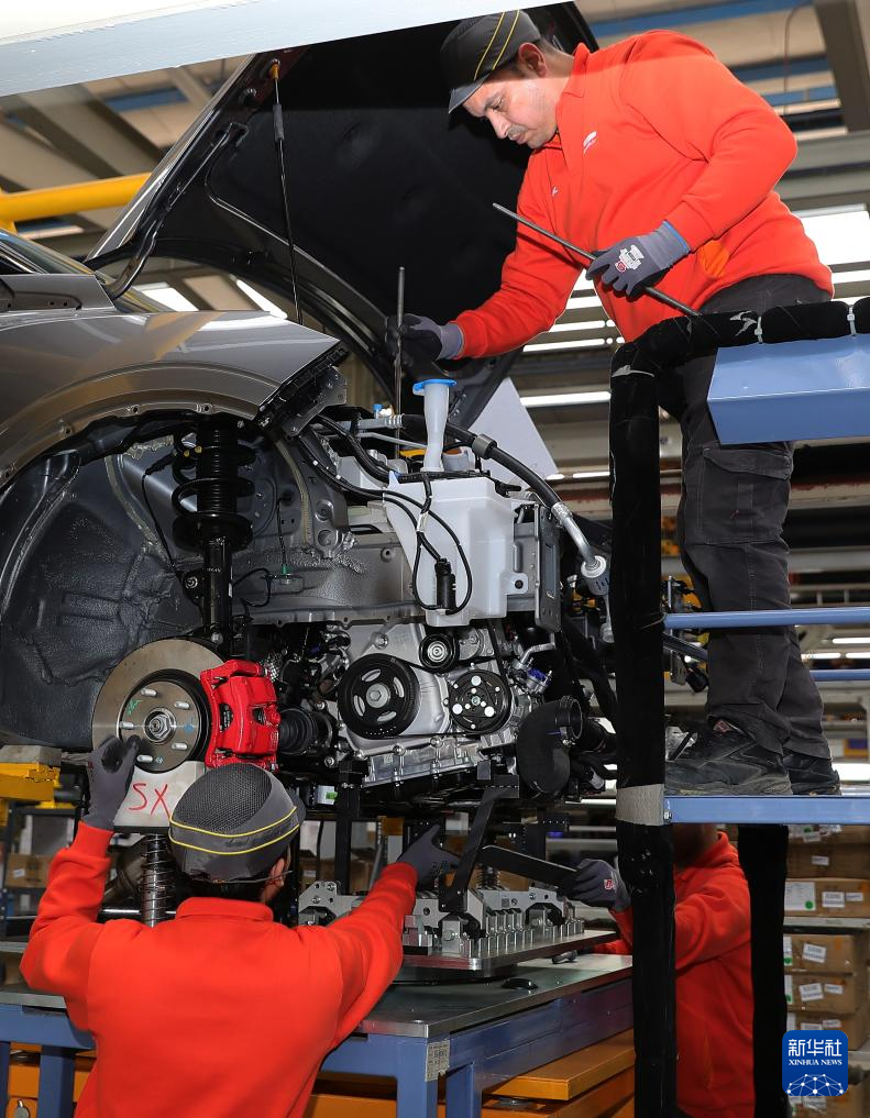 1月15日,在埃及吉萨省的十月六日城,工人在吉利汽车埃及工厂生产线上作业。