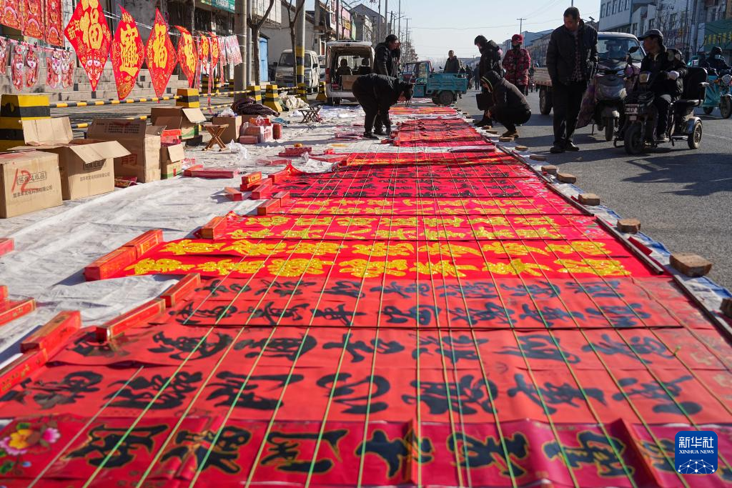 1月17日,人们在寨里镇大集上购买春联。