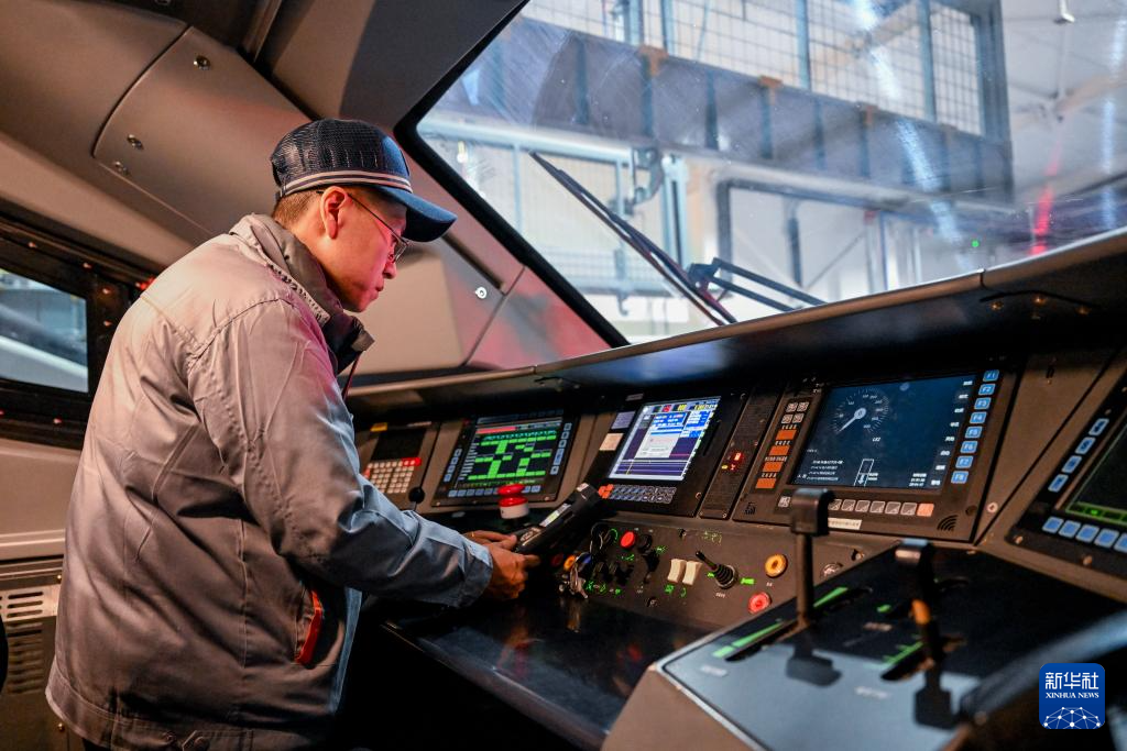 1月17日,工作人员对动车组列车驾驶室进行检查。