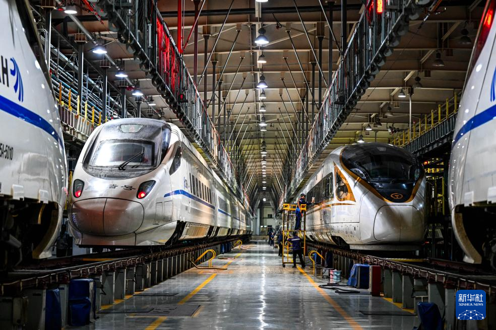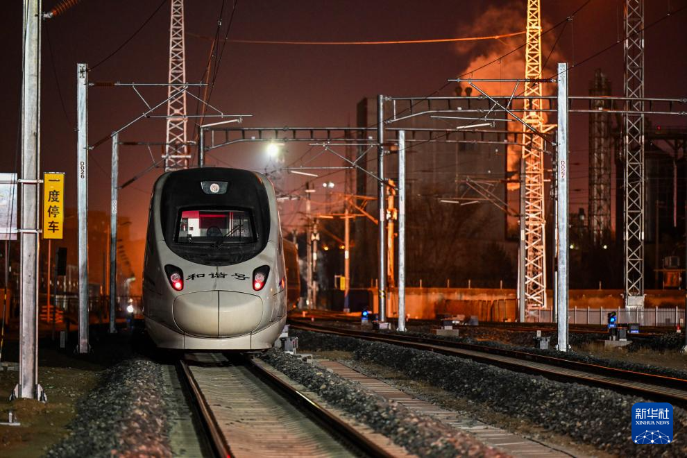 1月17日晚,中国铁路呼和浩特局集团有限公司包头车辆段呼和浩特东动车所内灯火通明,工作人员有序开展各项检查、维修等工作,确保动车组列车正常运行、保障旅客春运出行安全。