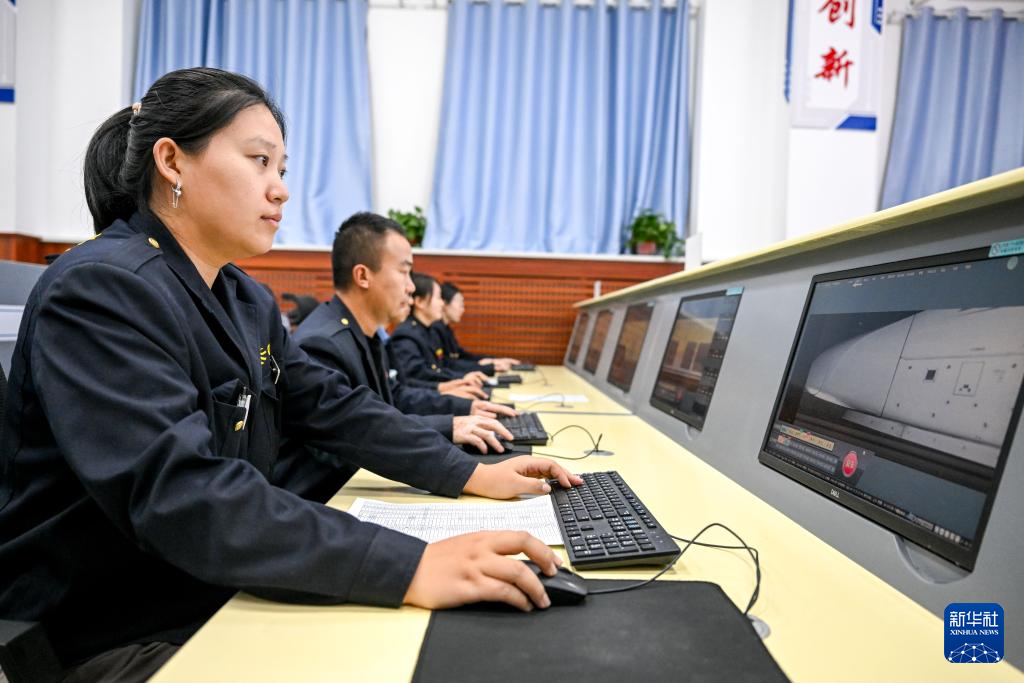 1月17日,工作人员使用动车组运行故障图像监控系统对车辆安全进行检查。