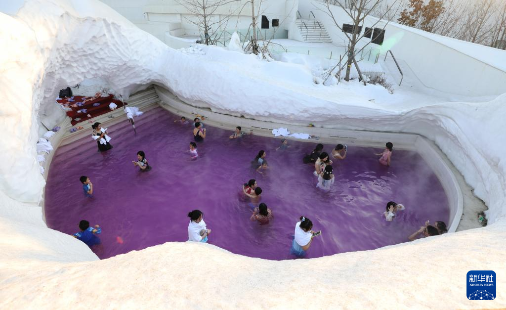 1月17日,在沈阳的清河半岛温泉度假酒店,游客体验冰雪温泉。