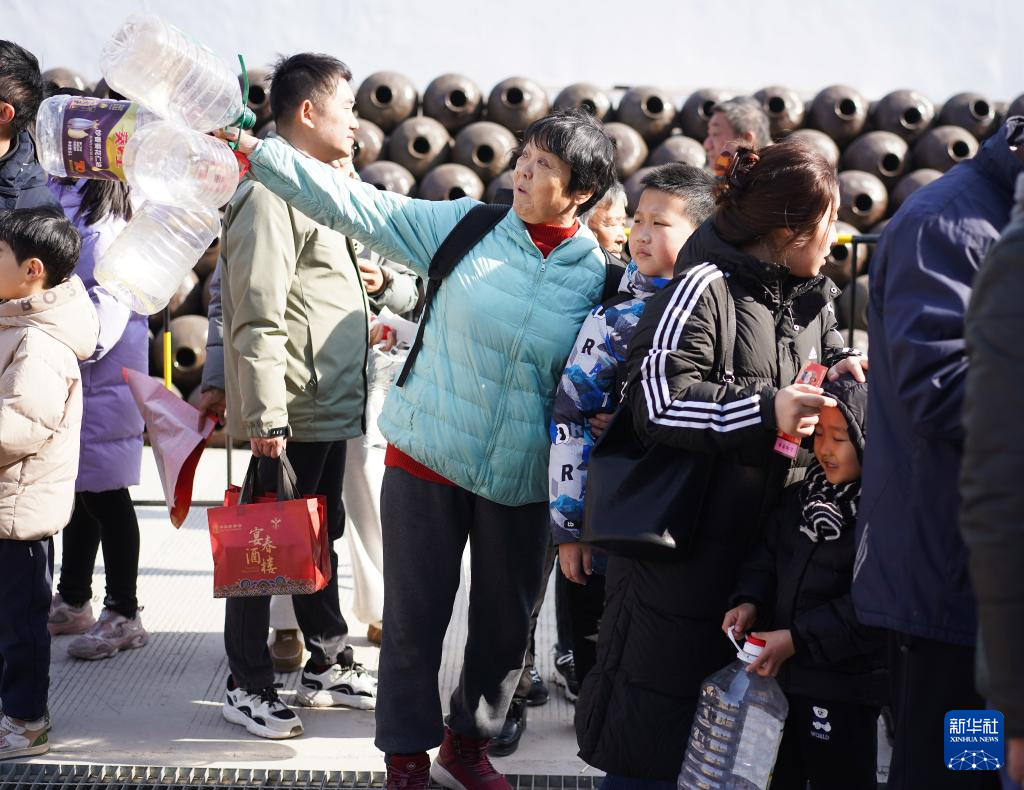 1月18日,市民在活动现场排队打酱油。