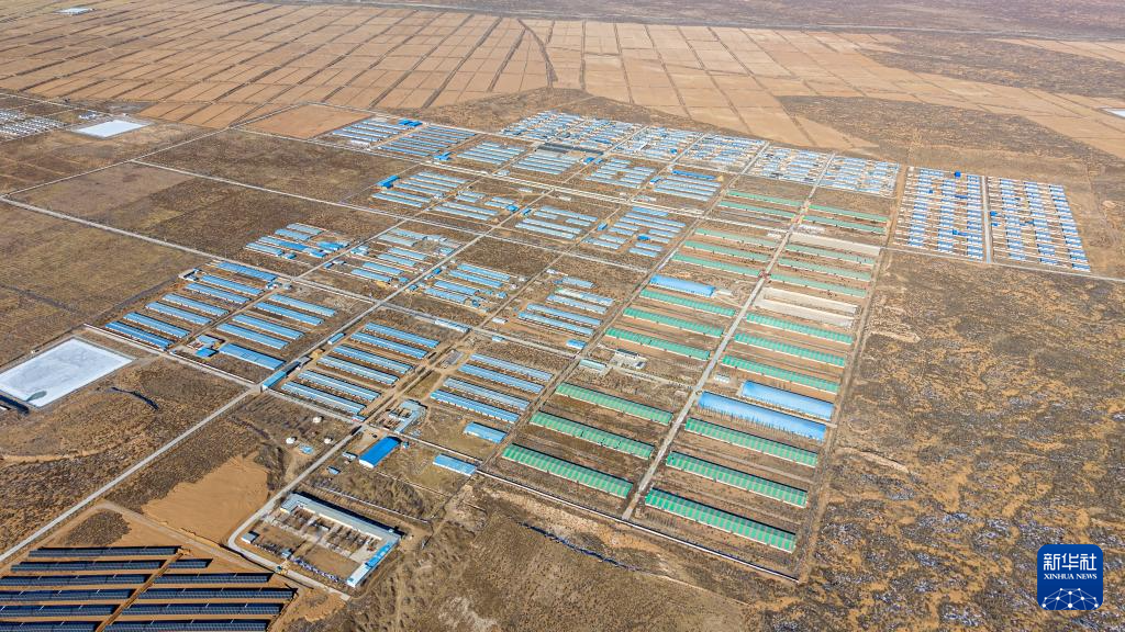 这是1月16日在古浪县黄花滩干城乡富民新村拍摄的一处规模养殖场(无人机照片)。