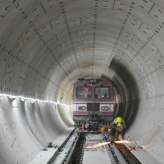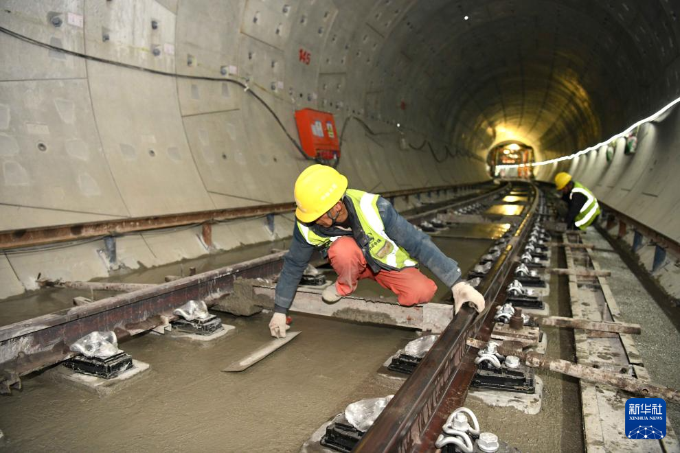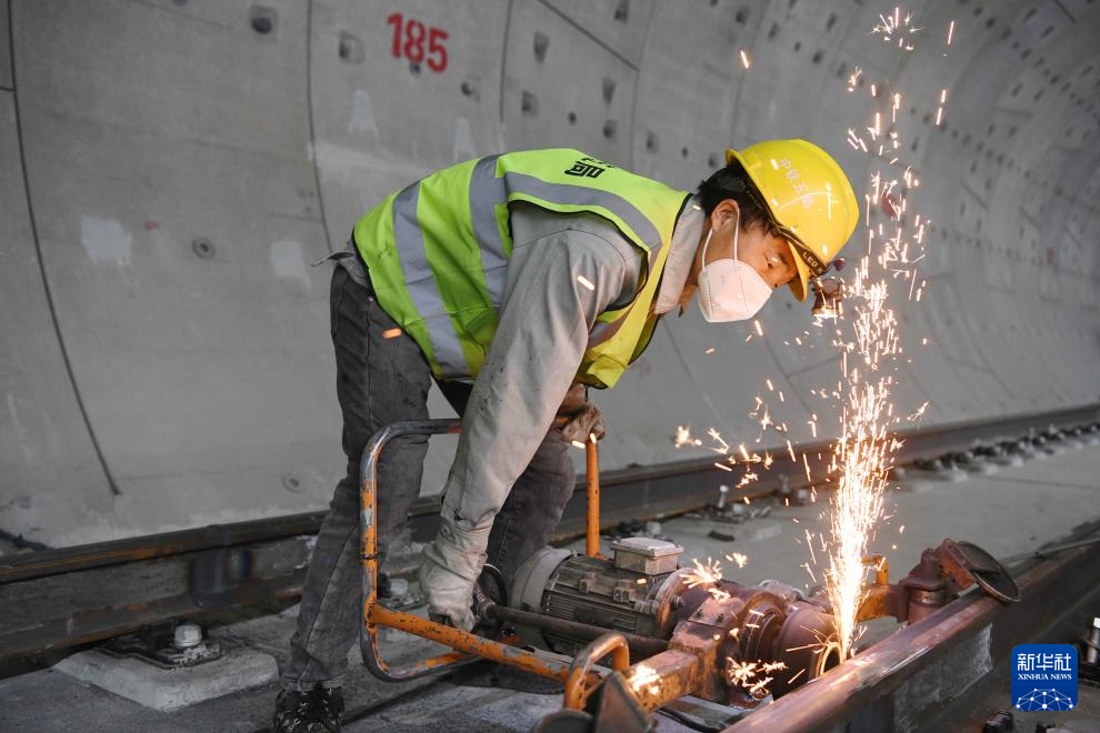 临近春节,在中铁五局承建的合肥新桥机场S1线正线轨道铺设施工现场,工人迎寒而上,抢抓建设进度,确保重点工程建设进展顺利。