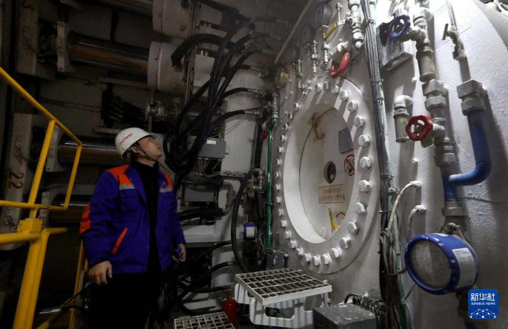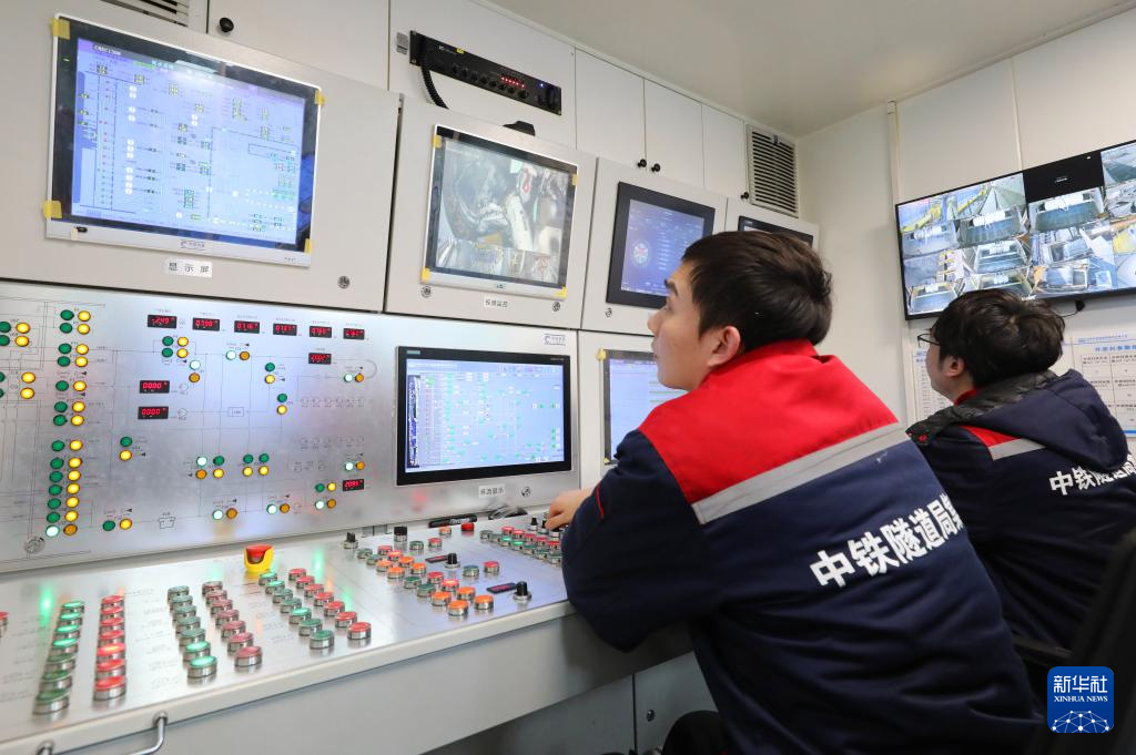 1月18日,一名工程技术人员在“领航号”盾构机上查看仪表数据。