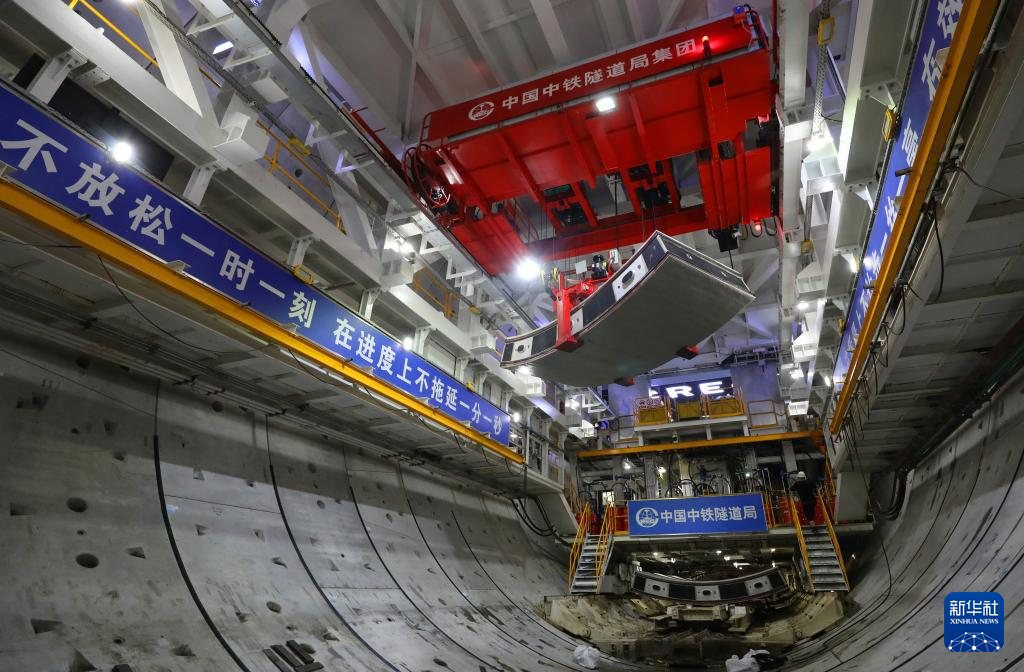 1月18日拍摄的“领航号”盾构机管片吊装施工现场。