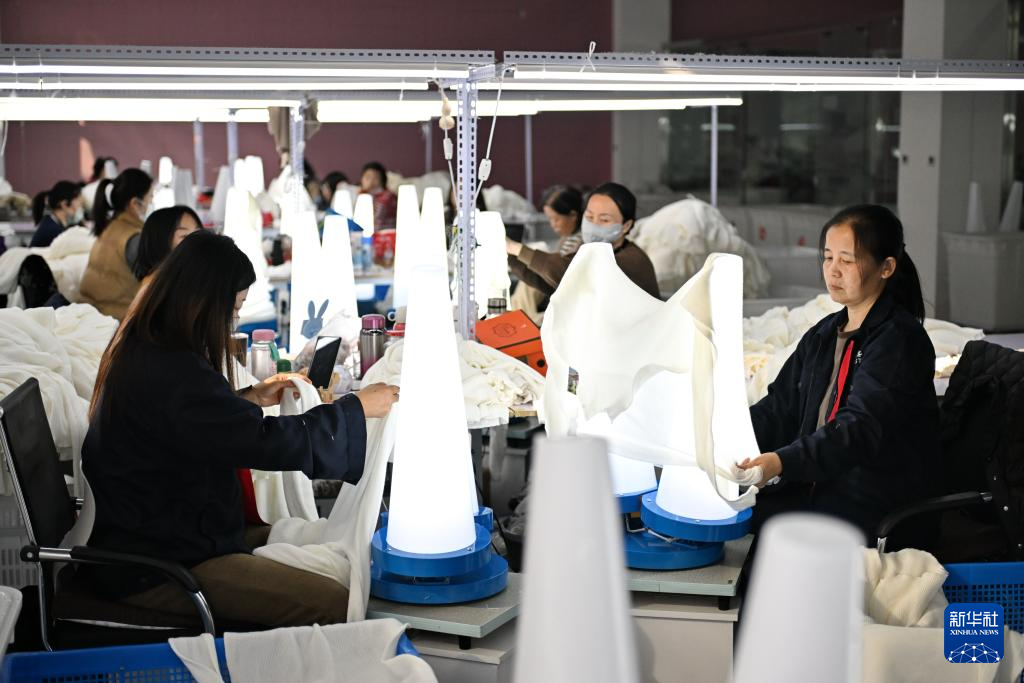 1月18日,河北省邢台市清河县一家羊绒制品生产企业的员工在检查羊绒成衣的质量。