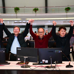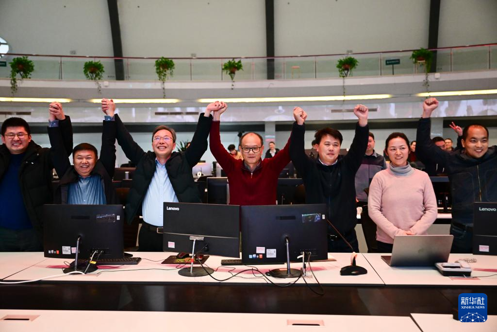 1月20日,EAST物理实验总负责人龚先祖(左四)和团队成员在实验成功后庆祝。