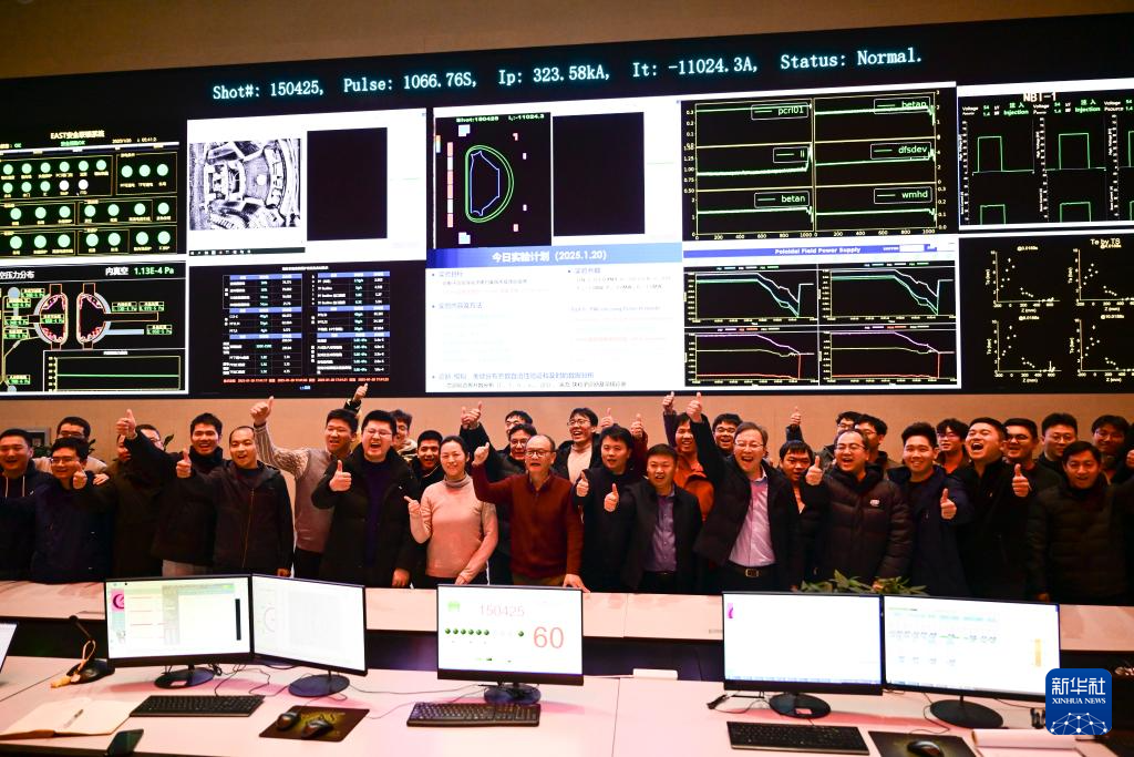 1月20日,EAST物理实验团队在实验成功后庆祝。