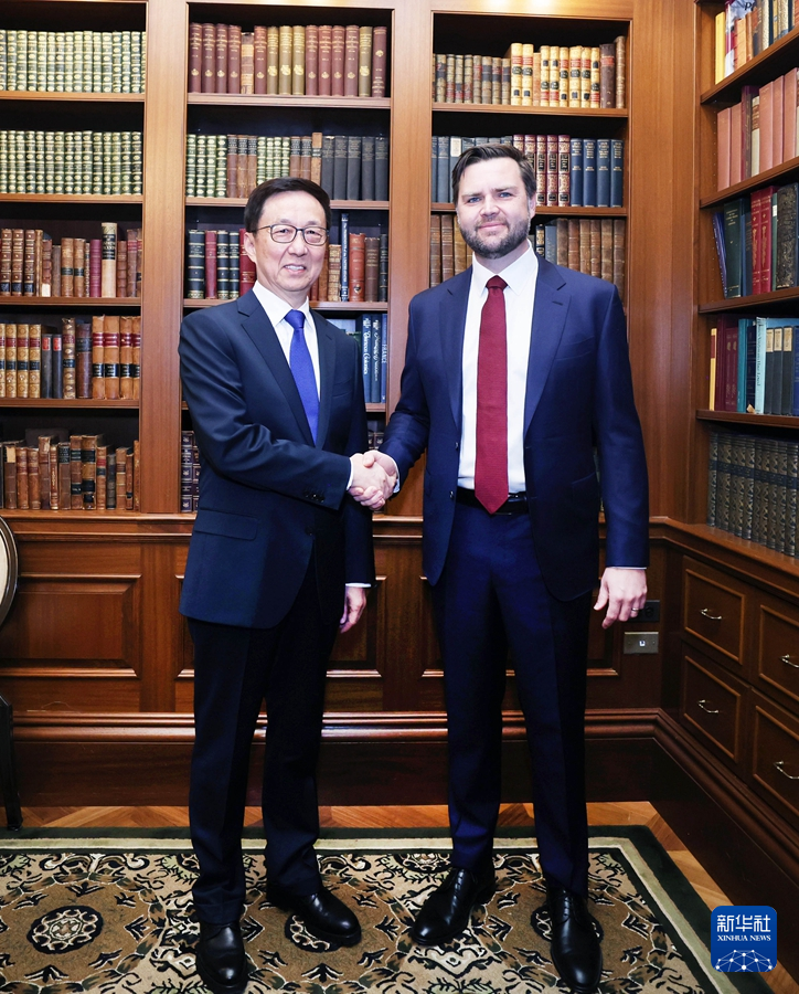 当地时间1月20日,习近平主席特别代表、国家副主席韩正应邀在华盛顿出席美国总统特朗普就职典礼。在美期间,韩正同当选副总统万斯举行会见。