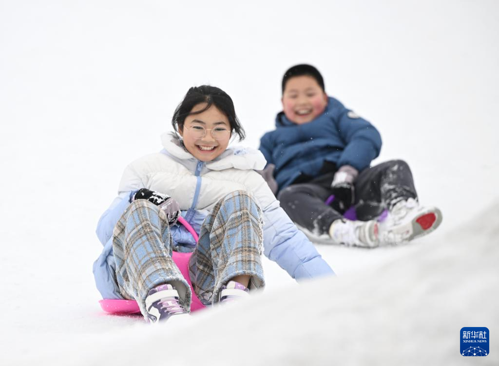 1月12日,在四川峨眉山景区,小朋友在参与戏雪项目。