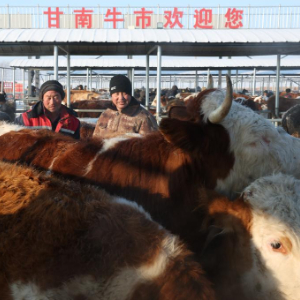 当日是北方的小年,位于黑龙江省齐齐哈尔市甘南县欢喜村的甘南镇欢喜牲畜交易市场迎来春节前的最后一个交易日。许多养牛户与购牛者来到这里交易,市场热闹非凡。欢喜牛市建于2002年,是东北地区一座大型一站式牲畜交易市场。
