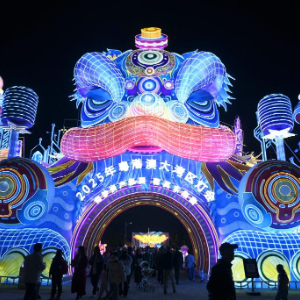 当晚,2025年粤港澳大湾区灯会在广州市南沙区亮灯,大湾区灯会以“光耀神州 华彩湾区”为主题,融入大湾区城市相关文化元素,万盏彩灯点亮夜空。