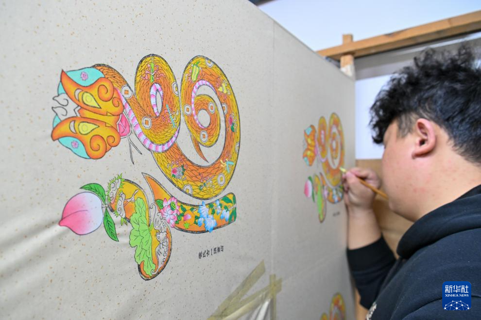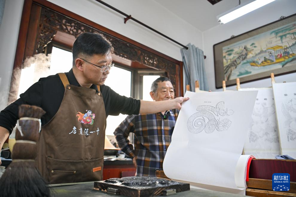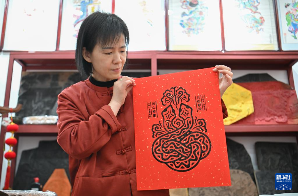临近蛇年春节,天津杨柳青木版年画在年画绘制创作中融入蛇年生肖元素,推出一批迎合蛇年生肖主题的年画及文创产品,用传统非遗技艺和现代元素的结合烘托出浓郁年味儿。