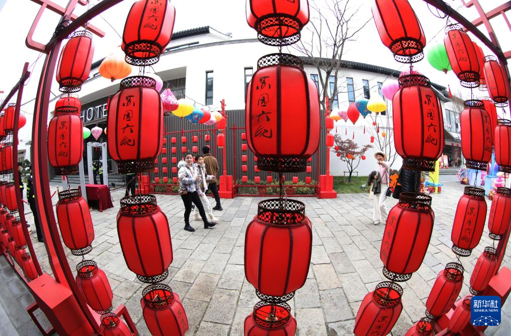 1月23日,游客在江苏苏州桃花坞唐寅故居文化区游玩。