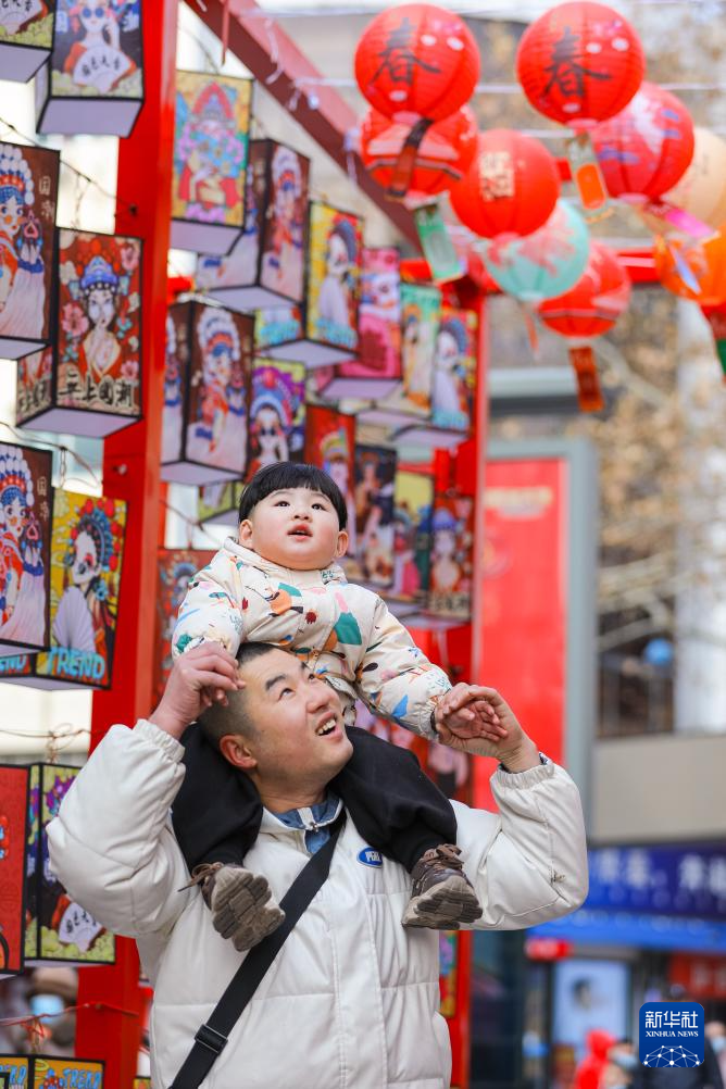 1月23日,市民在山东省青岛市李沧区李村商圈向阳路步行街游玩。