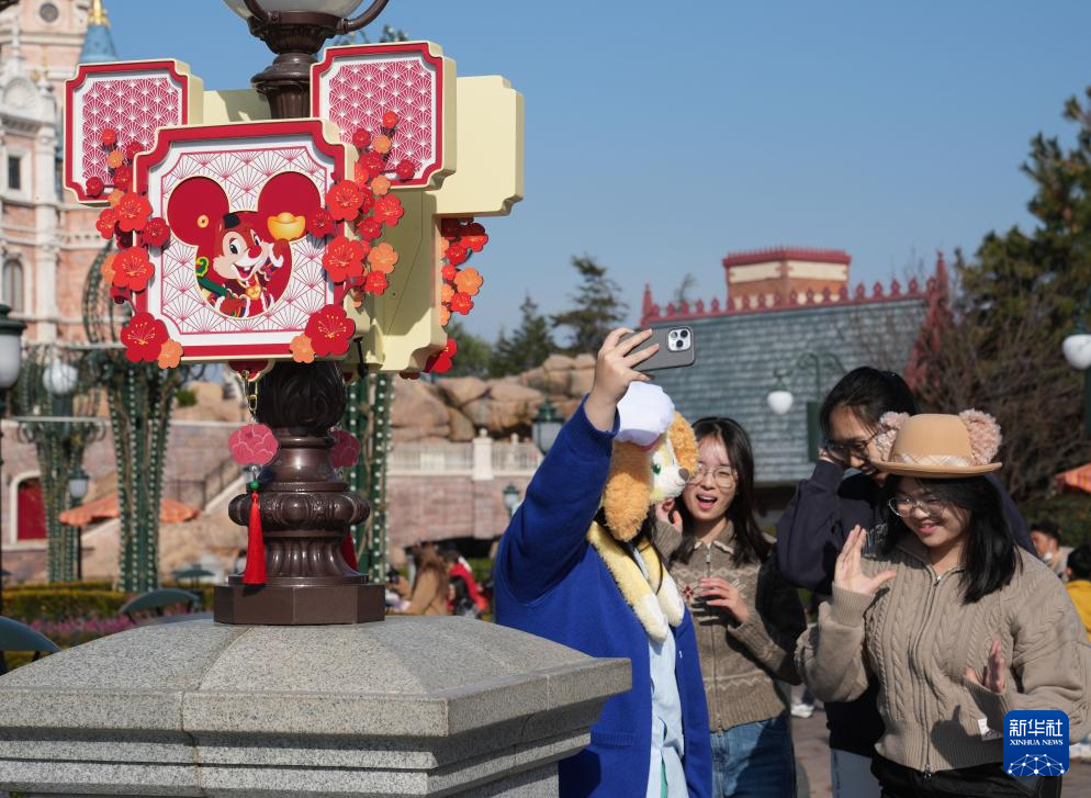 1月22日,游客在上海迪士尼乐园自拍。