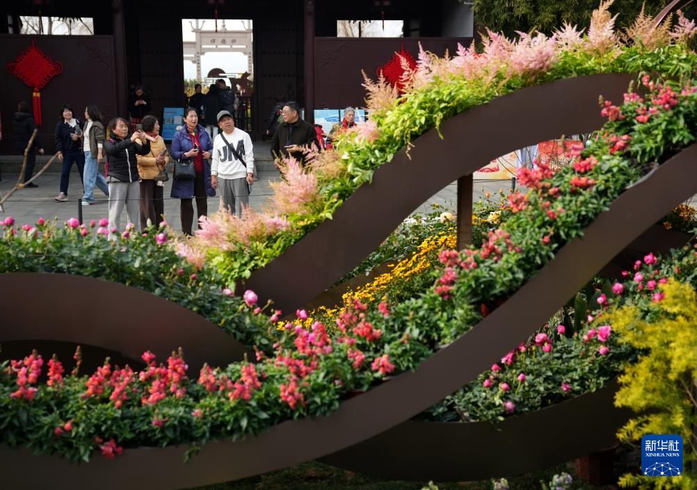 1月23日,人们在杭州钱王祠内观看西湖迎春花展。