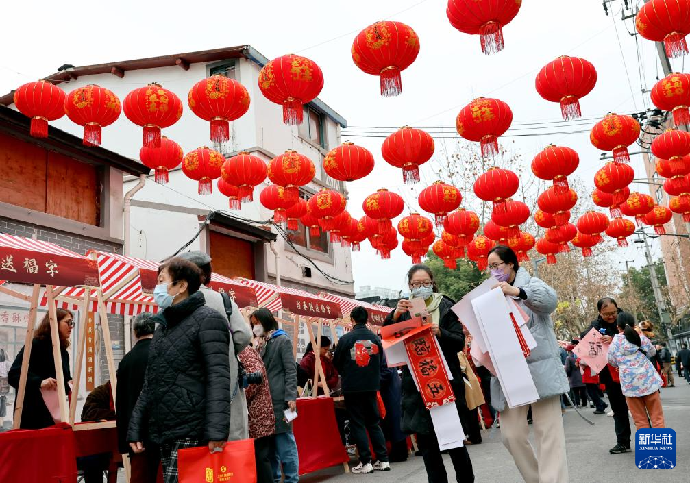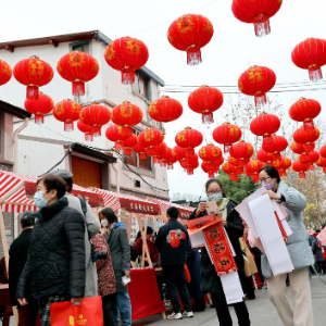当日,“幸福万家”第二十届老西门春联大会在上海黄浦区老西门街道举行。市民游客不仅可以在现场领取书法家和社区书法爱好者们手书的春联福字,还能在非遗展示摊位前体验传统手工艺,蛇年春节味道渐浓。