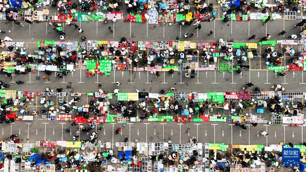 1月23日,江苏省连云港市东海水晶城淘晶广场水晶大集,人们在选购水晶制品(无人机照片)。