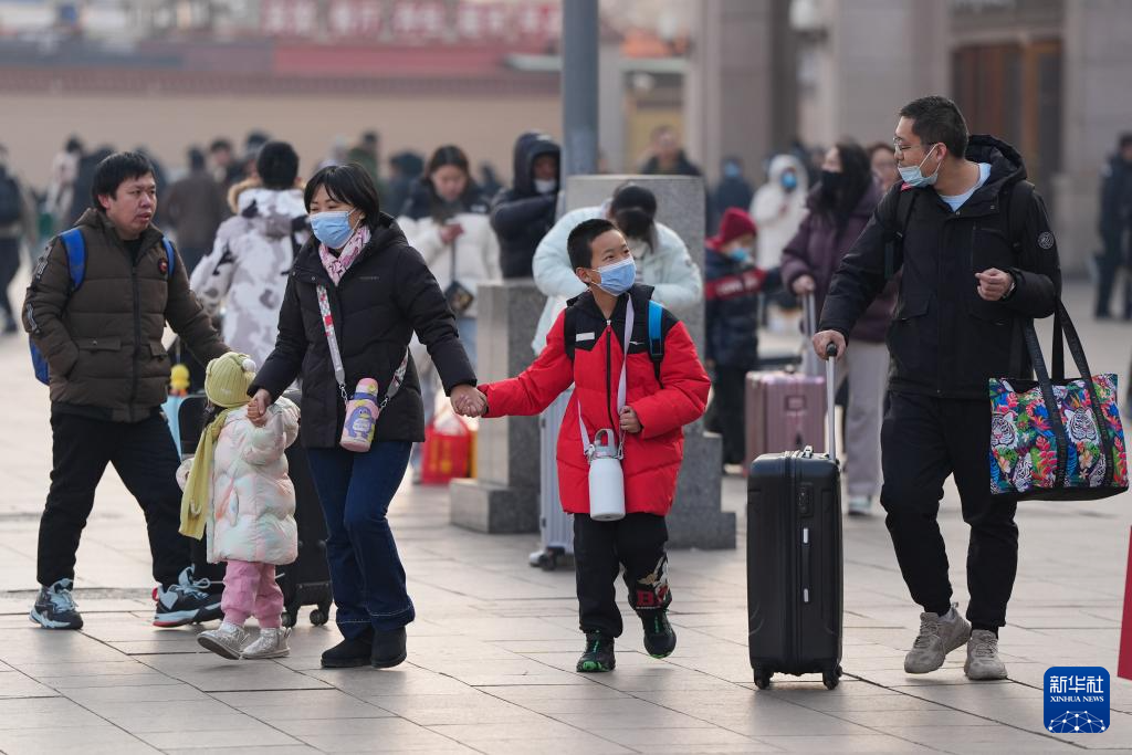 1月24日,几名旅客行走在北京站广场上。