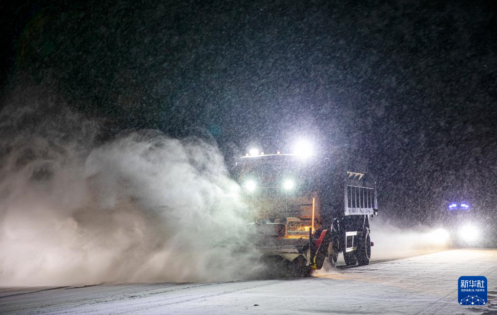 1月24日,甘肃省张掖公路事业发展中心的除雪车在国道307线开展公路除雪作业。