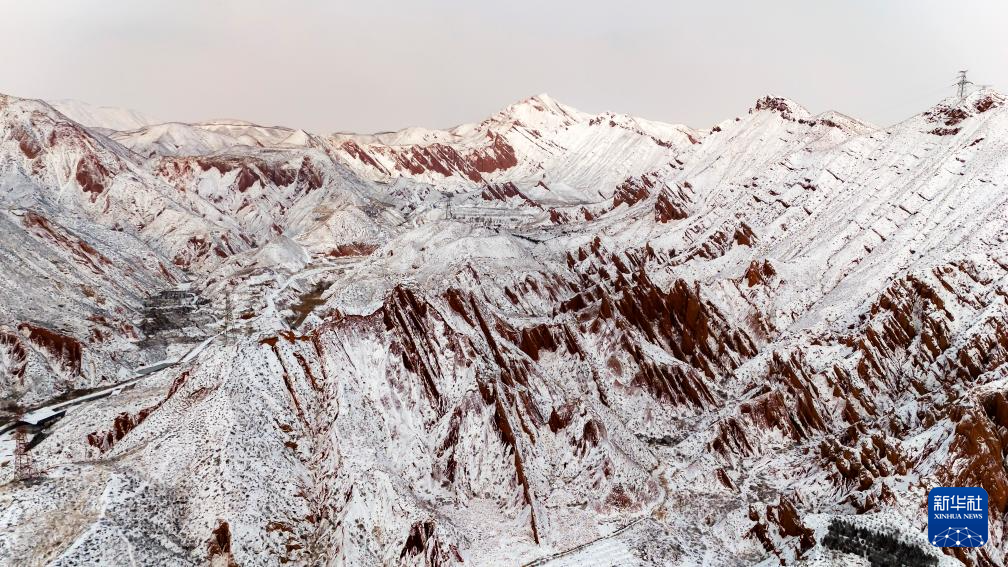 1月25日拍摄的雪后兰州丹霞(无人机照片)。