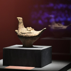 这是1月25日在展览现场拍摄的鸟形来通杯。