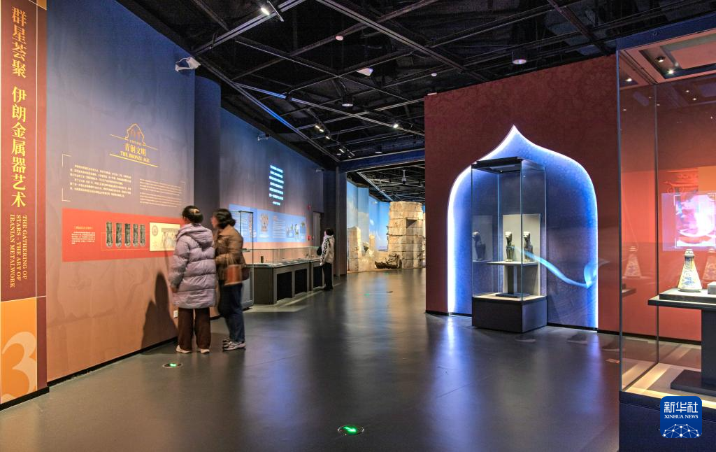 1月25日,观众在“群星点亮的夜空——波斯文化艺术五千年”特展现场参观。