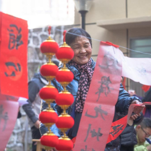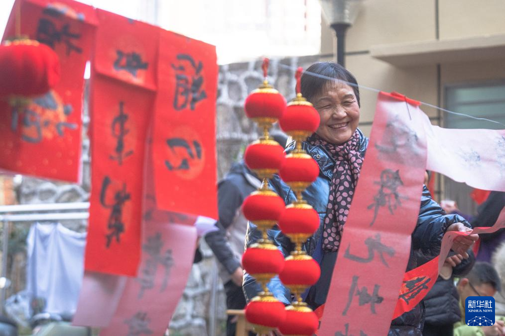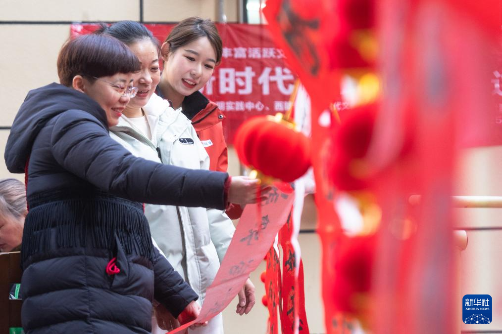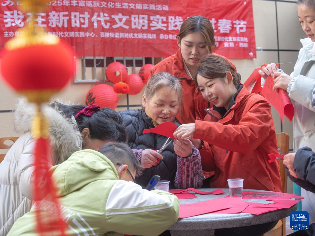 当日,在湖北省宜昌市西陵区安居小区党群连心站,居民与改造此小区的建设者们欢聚在一起,开展写春联福字、剪窗花等活动,在喜气祥和的气氛中迎接即将到来的春节。