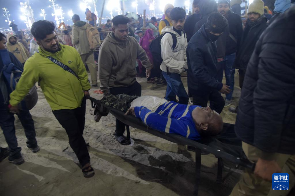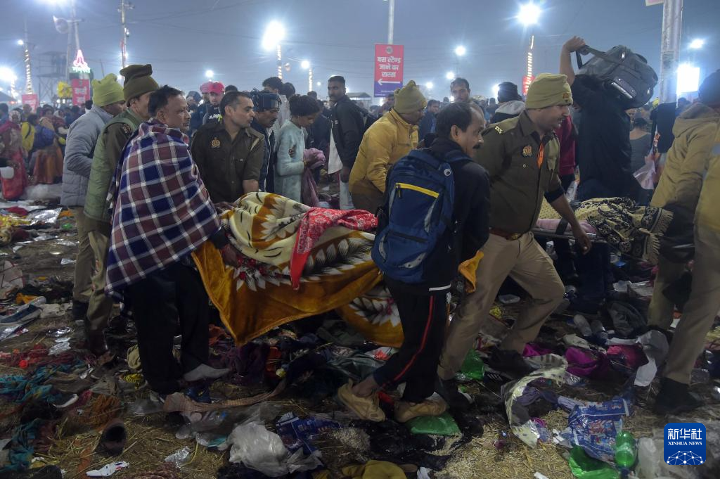 1月29日,在印度北方邦普拉亚格拉杰市,人们搬运遇难者的遗体。