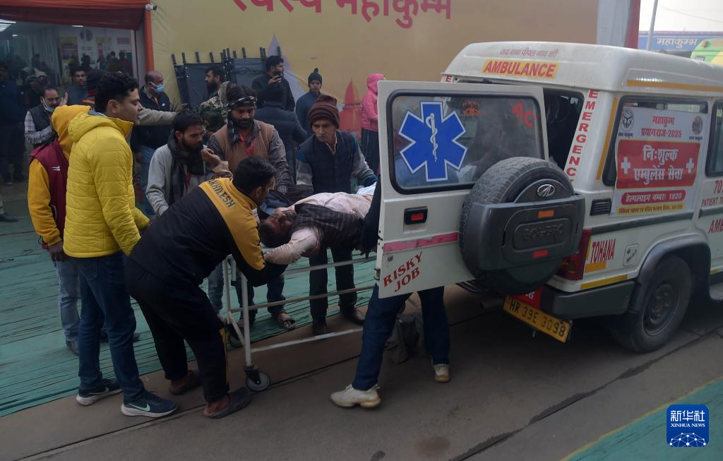 1月29日,在印度北方邦普拉亚格拉杰市,伤员被运送至医院接受治疗。