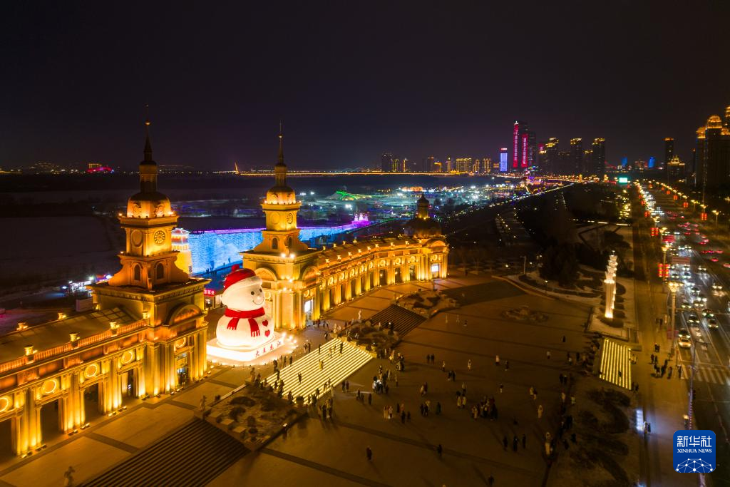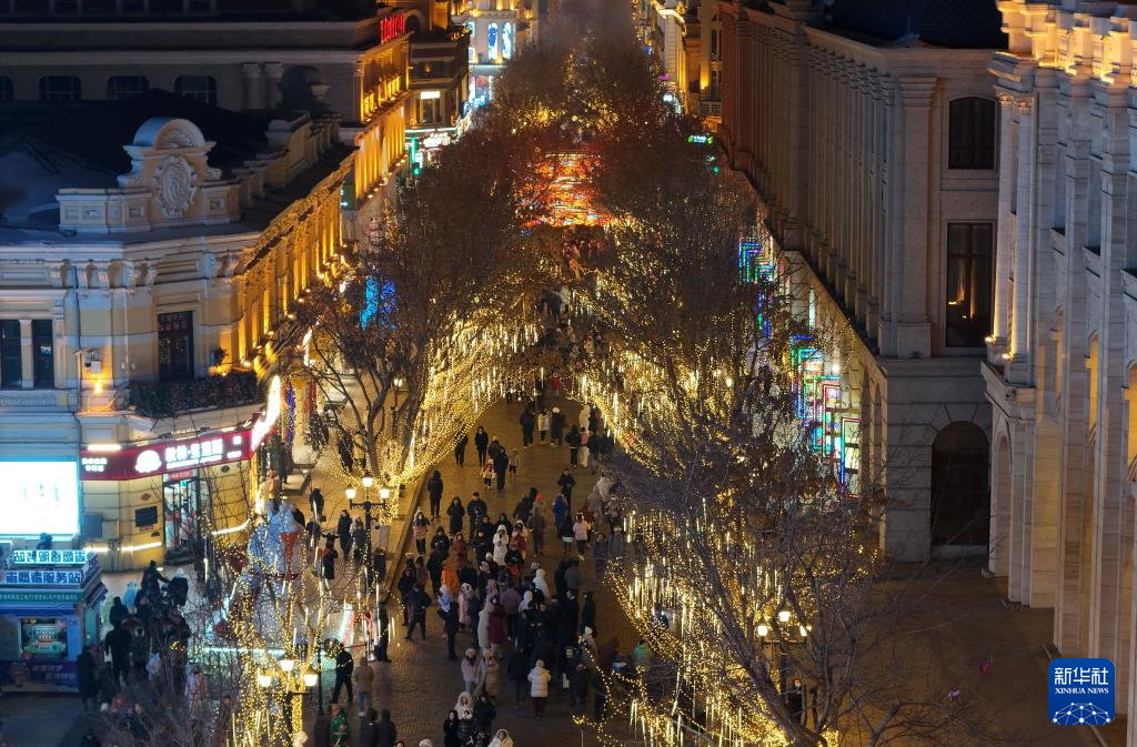 这是1月26日在哈尔滨中央大街拍摄的夜景(无人机照片)。