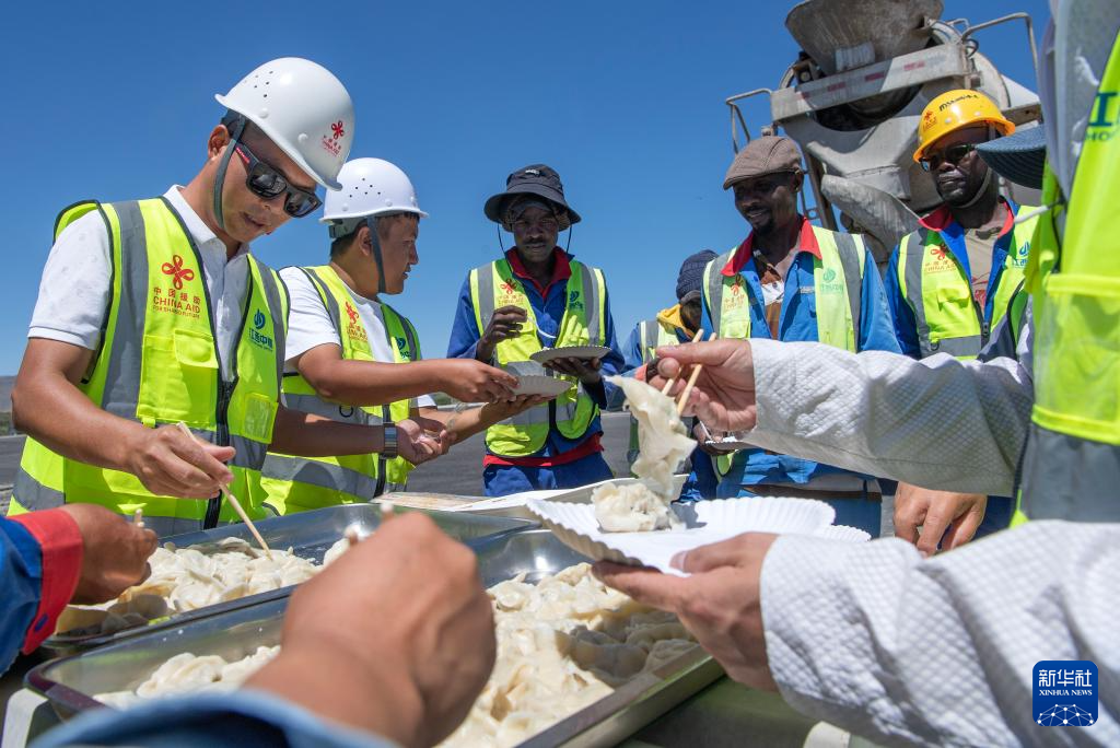 当日,由中国政府援建的纳米比亚首都国际机场公路项目第三期工程施工现场和驻地洋溢着浓浓年味。中纳双方员工通过参加包饺子、拔河比赛、套圈游戏等方式共同庆祝蛇年春节。